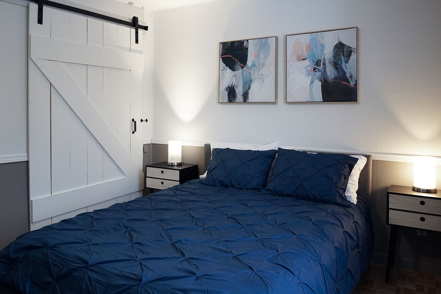 Le chalet a été complètement rénové et possède 3 grandes chambres à coucher avec lit Queen et 1 Sofa lit pouvant accueillir 11 personnes, ayant accès à 2 salles de bain.